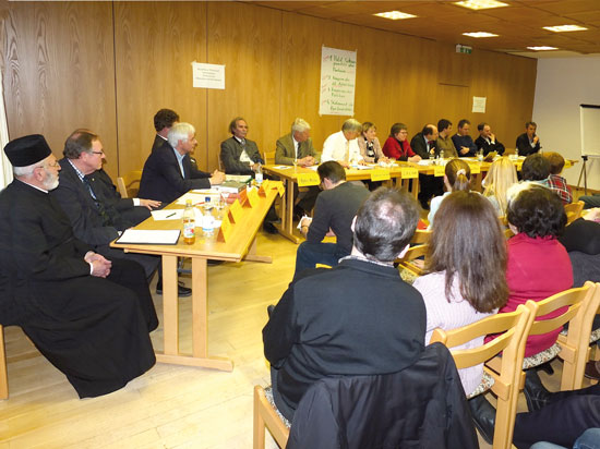 Organisiert und moderiert wurde die Diskussion von Pfarrer Frank Deuring (Katholische Gemeinde), Pfarrer Joachim Spengler (Evangelische Gemeinde), Pastor Günther Wolke (Freie evangelische Gemeinde), Pastor Christoph Nadon (Christliche Glaubensgemeinschaft) und Pfarrer Yavno Cepe (Syrisch-Orthodoxe Gemeinde).