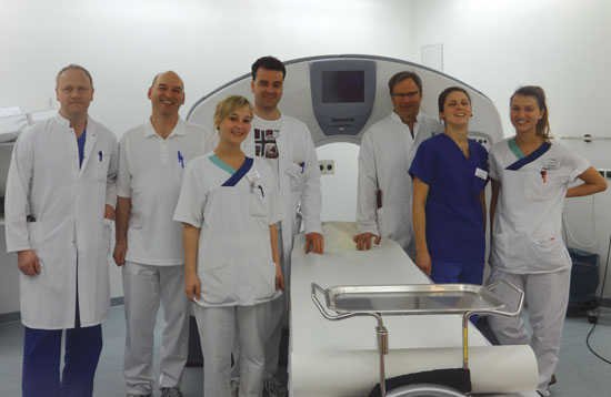 Diese Behandlung sei sehr komplex und gehöre immer in die Hand von Experten, so der Mediziner, weil nur so die bestmöglich Therapie für den jeweiligen Patienten gewährleistet sei. Neben sogenannten Lyse-Verfahren, mit denen das Gerinnsel im Gehirn medikamentös aufgelöst werden soll, gibt es auch die Möglichkeiten, mittels Katheter das verstopfte Gefäß mechanisch zu öffnen, vergleichbar der Herzkatheterbehandlung im Falle eines Herzinfarktes. Welche Methode jeweils angewendet werden müsse, hänge immer von der Differentialdiagnose im Einzelfall ab. „Fakt ist, wir können hier in der Klinik Füssen alle Methoden zur erfolgreichen Behandlung eines Schlaganfallpatienten anbieten.“  so Hinterseer. Die Unterstützung durch die Experten verhelfe hier zu schnellen Entscheidungen.