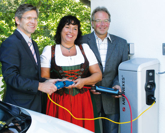 Nach Schwangau und Füssen steht nun in Pfronten die dritte Stromtankstelle für die Öffentlichkeit bereit. „Wir haben nach einem günstigen Standort gesucht. Der liegt nun ideal direkt beim Rathaus, nicht weit entfernt vom Haus des Gastes“, freute sich Pfrontens Bürgermeisterin Michaela Waldmann. Die EWR als einziger Stromversorger der Kommune finanzierten die Kosten für die Tankstelle, deren Anschluss und bieten derzeit den Strom kostenlos an. So entstand in enger Abstimmung zwischen Kommune und Energieerzeuger diese innovative `Kraftstoffversorgung.´ „Diese Tankstelle ist ein kleiner Mosaikstein“ in der Entwicklung dieser Antriebsenergie“, wie Hilz betonte. Waldmann stellte in Aussicht, dass im Herbst ein Dienstwagen zum Einsatz kommen soll, der mit E-Antrieb ausgestattet sein wird. Dieses Konzept des E-Stroms passe gut in das Klimaschutzkonzept 2020, das die Kommune erarbeitet habe, meinte die Bürgermeisterin. In Pfronten gebe es derzeit vier Elektromobile. „Wo können wir tanken?“, mit dieser Frage seien die betreffenden Autofahrer auf die EWR zugekommen. Damit der Radius von rund 140 Kilometer einer „Füllung“ die Fahrer nicht mehr so einschränkt, können EWR-Kunden sich auch an anderen Ladesystemen im Bereich Allgäu-Bayerisch-Schwaben bedienen. Dazu habe man sich laut Hilz als Gründungsmitglied mit dem überregionalen Ladeverband „Ich tanke Strom“ zusammen getan.