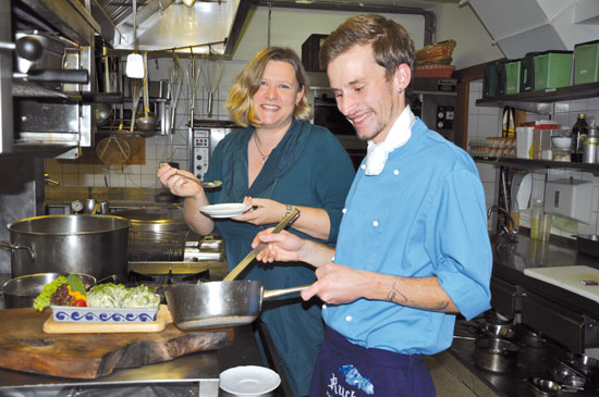 Die „grüne Welle“, die heute gerne als Oberbegriff für Frische, Regionalität und Qualität genommen wird, praktiziert Vater Herrman schon viele Jahre. In seinem Schrebergarten wachsen nicht nur Kräuter sondern auch verschiedene Gemüsesorten wie Zucchini, Lauch, Ruccola, Karotten und Grünkohl, die Tochter Stefanie Baier-Ruchti in der Hotelküche verarbeiten lässt. Eine besondere Spezialität des Hauses ist die Hühnersuppe. „Unser haus-eigener Hühnerstall liefert täglich frische Eier. Unsere Weihnachtsgänse und Enten sowie Kaninchen werden von uns selbst herangezogen. Im Frühling, wenn der Holunder blüht, gibt es Hollerküchle, im Sommer Johannisbeeren aus dem Garten und im Herbst Holundermarmelade“, fasst die Hotelchefin kurz zusammen.