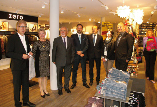 Reuttes Bürgermeister Alois Oberer eröffnete die Filiale. „Die Belebung des Zentrums ist eine gute Sache!“ Auch freut ihn, dass der große Parkplatz hinter dem Gebäude öffentlich zugänglich ist. Sprach´s, und legte sich umgehend zwei Anzüge und die nötigen Accessoires zu.  Auf rund 1300 Quadratmetern Verkaufsfläche bietet Feucht Wäsche, Damen-, Herren- und Kinderartikel von internationalen Topmarken an. Eine Besonderheit stellt die sechs Meter lange Bar dar. Die Unternehmerfamilien Saurer und Feucht sind sich seit Jahren freundschaftlich zugetan. So ergab sich die rasche Übernahme.