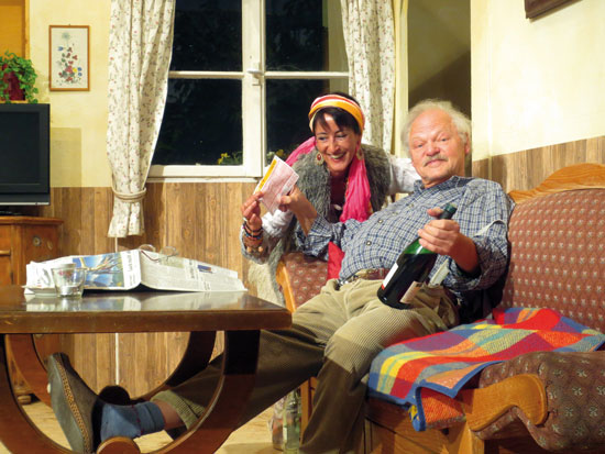 Die Theatersaison ist lang, denn ca. 20 Vorstellungen sind in einer Saison zu spielen. Und jeder spielt immer. Ob mit Gipsarm, Halskrause oder Fieber. Im Umkreis von Füssen bis ins Außerfern gibt es viele kleine Volkstheater. Meist von Vereinen, welche im Schnitt alle zwei Jahre spielen und fünf bis sechs Vorstellungen zeigen. In Hopfen ist das anders. Hier dreht sich eigentlich das ganze Jahr alles ums Theater. „Der verlorene Lottoschein“ heißt das Stück 2015. „Eigentlich wollten wir das 2014 schon auf die Bühne bringen“ erzählt Uli Pickl. Er hat das Stück geschrieben, führt Regie, baut die Bühne und spielt auch die Hauptrolle, den Altbauer Korbinian Brandl.