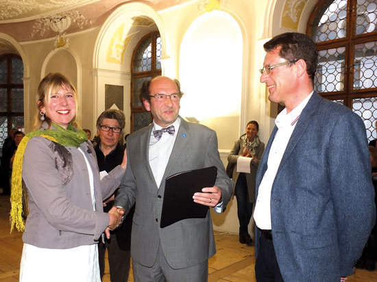 Gerhard Menger, Vorsitzender des Berufsverbandes Bildender Künstler (BBK), würdigte ihr Schaffen. Klare Schnitte und Kanten der mit Motorsäge bearbeiteten Baumstämme wirken lebendig und spiegeln expressive Lebensfreude wieder. Bürgermeister Paul Iacob merkte an, dass die Stadt Füssen der Kunst gerne den passenden Rahmen gibt und bedankte sich bei den Elektrizitätswerken Reutte (EWR) für die finanzielle Beteiligung am Preisgeld.