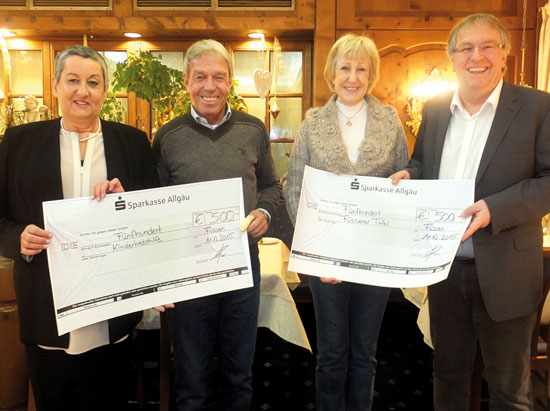 Dorothea Wanner nahm die Spende für die Füssener Tafel erfreut entgegen, denn mit diesem unerwarteten und hoch willkommenen Geldsegen können zur großen Freude der Tafelmitarbeiter und bestimmt auch der inzwischen rund 170 Tafelkunden für das Weihnachtsfest als Zugabe zu den üblichen Lebensmitteln auch mal wieder kleine Extras eingekauft werden.