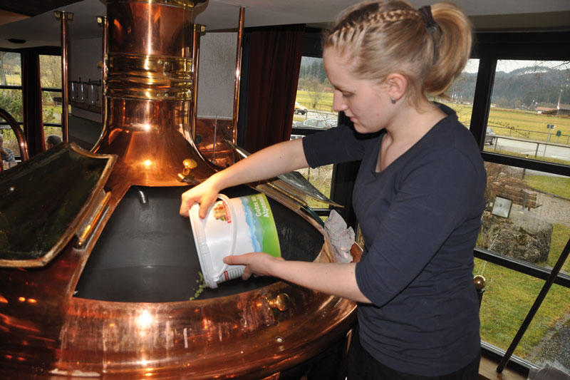 Die fünfte Jahreszeit steht im Kalender. Die Zeit, in der viele grosse und auch kleine Brauereien traditionell ihr sogenanntes Starkbier, ihren Doppelbock brauen. So wie auch das Schwangauer Schlossbrauhaus. Der Doppelbock muss mindestens 18 Prozent Stammwürze haben, erklärt Brauer Tom Bonell, das entspricht immerhin einem Alkoholgehalt von knappen 8 Prozent. Angesetzt und gebraut wird der Doppelbock, der in Schwangau “Linator“ heisst, bereits Anfang Dezember. Die Maische ist dickflüssiger, da der Malzanteil höher ist, etwa 7 bis 10 Tage dauert dann die Hauptgärung.