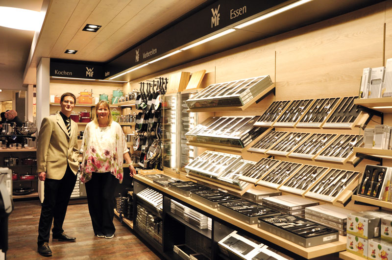 „Apollo ist ein Unternehmen, das sich ausschließlich mit Luxusartikeln beschäftigt“, bestätigt Dan Chen, Geschäftsführerin von Apollo Duty Free Shopping, die bereits vor rund 14 Jahren einen Shop dieser Art in Frankfurt eröffnet hat. „Das neue Geschäft in Hohenschwangau ist nun das zweite seiner Art.“ Mit dem Umbau des ehemaligen Restaurants wurde im letzten November begonnen. Das Souvenirgeschäft, das vor dem Umbau an der Vorderseite des Gebäudes untergebracht war, besteht noch immer. „Der Kiosk am Park bleibt unser Souvenirgeschäft, in dem, vom kleinen Magneten bis hin zu einer Kuckucksuhr, viele verschiedene Artikel angeboten werden“, sagt Matthias Günes, Marketingleiter der Hotel Müller Hohenschwangau GmbH & Co. KG, die Eigentümer des Gebäudes ist. „Im Lauf der letzten Jahre haben wir gesehen, dass da eine große Nachfrage herrscht. Jetzt arbeiten wir mit der Apollo Neuschwanstein partnerschaftlich zusammen, weil wir dadurch noch viele weitere, hochwertige Duty-Free Artikel anbieten können.“ Im Sortiment finden sich nahezu ausschließlich deutsche und Schweizer Produkte, darunter bekannte Uhrenmarken, Haushaltswaren oder Kosmetik. „Das umfangreiche Angebot ist vor allem auf den Shoppingbedarf der asiatischen Kunden ausgerichtet“, erklärt Matthias Günes.