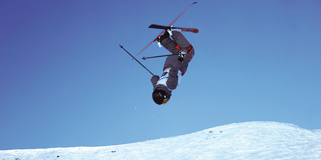 Gefahren wird über eine anspruchsvolle Steilpiste, die mit Buckeln übersät ist. „Das, was ich mache, ist eher unpopulär und unbekannt“, erklärt Julian. „Das sind viele Schneebuckel, über die man drüber muss, oben und unten dazu auch noch die Kicker, wo man durch muss.“ Mit Hilfe der sogenannten Kicker, den aus Schnee geformten Schanzen, wird der Skifahrer weit in die Luft „gekickt“. Durch den Kicker soll eine möglichst lange und ruhige Flugzeit erreicht werden, um verschiedene Tricksprünge wie einen Cork oder einen Backflip durchzuführen. Dabei kommt es gleich auf mehrere zu beachtende Kriterien an, die bewertet werden.