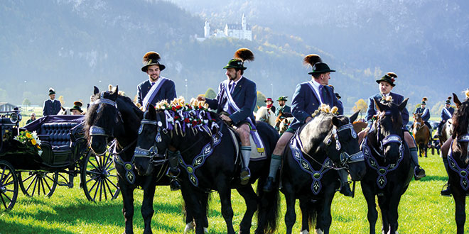 Ein ganz besonderer Tag in Schwangau ist jedes Jahr der 2. Sonntag im Oktober. Fast schon ein Nationalfeiertag im Dorf der Königsschlösser. Dieser Sonntag steht ganz im Zeichen des Colomanfestes.  Ca. 200 Reiter mit Pferden geben sich auch heuer am 9. Oktober ab 9.30 Uhr wieder die Ehre beim Festzug und anschl. Festgottesdienst an der Wallfahrtskirche St. Coloman im freien Feld.  Mit der Colomanreliquie, die sich in der Monstranz befindet, wird am Ende der Messe der Segen des Schutzpatron St. Coloman nicht nur für die Pferde, sondern für das gesamte Vieh erteilt. Anschließend folgt der Ritt um die Wallfahrtskirche.
