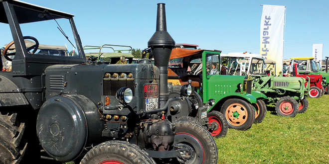 Ob noch im Einsatz oder nur als Liebhaberstück liebevoll aufpoliert: Hanomag, Lanz, Eicher, Fahr und weitere Marken mit etlichen Jährchen auf dem Buckel wurden eindrucksvoll und in langen Reihen präsentiert, alle nehmen an der Prämierung des ältesten oder originellsten Schleppers bei den Bauerntagen des Füssener Sportmarktes teil.