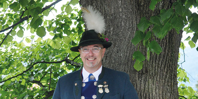 Er kommt ursprünglich aus der „Krone“ am Schrannenplatz in Füssen, dort wo der Gambrinus mit seinem Krug über der Eingangstüre thront. Dass er Tracht und Frack mit so viel Selbstverständlichkeit trägt, versteht sich heute irgendwie von selbst. Der 53-Jährige ist ein Schöngeist. So ein bisschen von allem, das gibt es bei ihm nicht. Entweder oder und dann auch richtig. Vor etwa sechs Jahren ist er wieder nach Füssen zurück gekehrt. Es war der Verein, der ihn rief oder besser gesagt sein Verein, der Gebirgs Trachten- und Heimatverein D`Neuschwstoaner, Stamm Füssen, bei dem er seit über 40 Jahren Mitglied ist. Er ist Sprecher des Hauptvorstandes und pendelt zwischen Waagkirchen und Füssen hin und her, nicht täglich aber oft genug. Einfach sind es 95 Kilometer. Für Andere wären diese Fahrten Strapazen, für Richard Hartmann bedeutet es ein Wiedersehen mit seiner Füssener Familie, den Trachtlern. Sie haben ihm damals Halt gegeben, sind zu ihm gestanden als er sich outete. Seit drei Jahren ist er verheiratet mit dem Mann, mit dem er seit 17 Jahren zusammen ist. Wie heißt es so schön: Wirklich gute Freunde sind Menschen, die uns ganz genau kennen, und trotzdem zu uns halten. Eine schöne Geschichte mit Happy End.