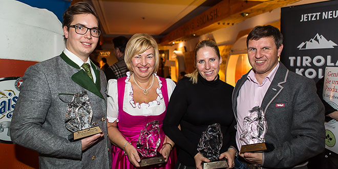 Den Award für die „Best Region“ nahmen TVB-Obmann Walter Barbist und TVB-Geschäftsführer Michael Keller entgegen. Die Trophäe aus Kristall bekam auch Hotelière Sonja Huber (Hotel …liebes Rot-Flüh, Haldensee) als „Best – Hotel 5-Sterne“ überreicht. „Mr. Top-of-the-mountains“ 2017 darf sich Alexander Huber (Hotel …liebes Rot-Flüh) nennen. Als „Best – Après Ski Bar“ wurde das „s’Um und Auf“ in Grän ausgezeichnet.