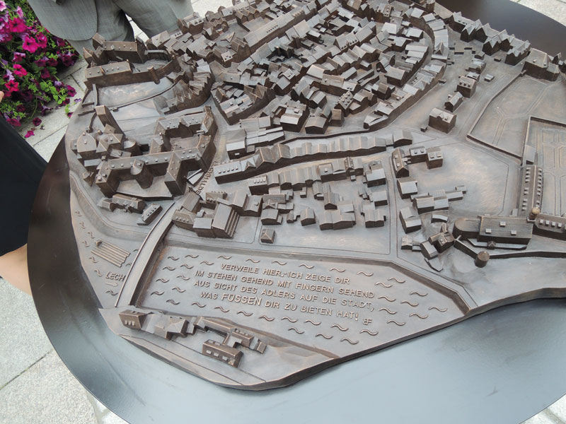 Das Modell steht direkt im Zentrum der Füssener Altstadt, neben dem Stadtbrunnen und kann ab sofort gerne berührt und begutachtet werden.