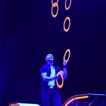 Einzelne Höhepunkte waren dabei schwer ausfindig zu machen, gebannt verfolgte das Publikum alle Darbietungen der Artisten. Künstlerin Liz Williams aus den USA führte ihre Luftartistik in einem weißen Tuch über den Köpfen der Gäste vor, bewegte sich mit Anmut und Präzision im Rahmen ihrer einzigartigen Choreografie. Bellowski verzauberte mit seinen kleinen und großen Seifenblasen, während das Zebra Stelzentheater aus München einen unvergesslichen Tanz schwebte und schwankte. Comedian Christoph Engels jonglierte mit Gurke, Melone und einer Kettensäge und nahm sich zwei Gäste aus dem Publikum gleich mit auf die Bühne, die so zu weiteren Stars des Abends wurden. Stehende Ovationen gab es aber vor allem für die Schweizer Ausnahmekünstlerin Marula Eugster, die mit einer Feder und 13 Palmblatt-Rispen eine Oase der Konzentration und Ruhe entstehen ließ und mit ihrem unbeschreiblichen Ballanceakt das Publikum mehr als faszinierte. Moderiert wird die Show von Conférencier und Zauberkünstler Stefan Alexander Rautenberg, der die Zuschauer stilvoll durch den Abend geleitet.