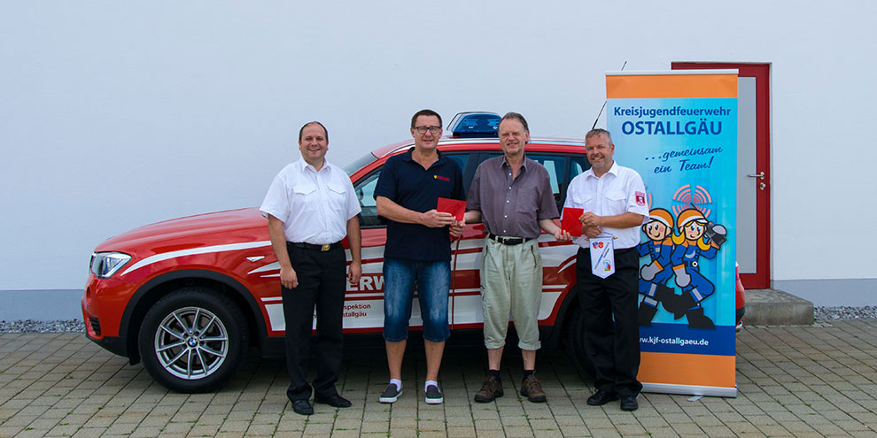 Er spendet und spendet und am liebsten an Vereine, die in Füssen und Umgebung viel leisten. Die Rede ist von Jürgen Brecht, der an den Kreisjugendfeuerwehrwart Klaus Grosch, im Beisein von Kreisfeuerwehrverbandsvorsitzenden Markus Barnsteiner, für die Kreisjugendfeuerwehr Ostallgäu eine Spende in Höhe von 1.111,00 EUR überreichte. Auch der Füssener Feuerwehrverein erhielt zur Nachwuchsförderung ebenfalls 1.111,00 EUR. Die Spende nahm Vereinsvorsitzender Gerhard Ruf entgegen.
