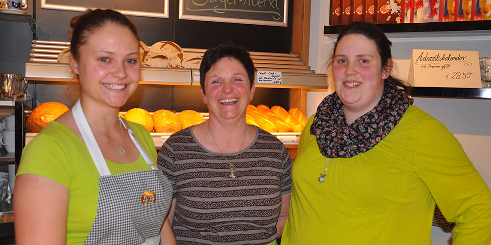 Vieles macht Veronika Kößel anders. Für die Brote und das Kleingebäck hat sie keine Backmischungen. Die Mehle für die verschiedenen Brotsorten stellt sie selbst zusammen. „Wir haben weniger Brotsorten, dafür wechseln wir sie öfter ab. Es gibt immer wieder etwas Neues bzw. etwas Anderes“, so die junge Geschäftsfrau. Im Betrieb arbeiten alle mit. Mit alle ist die gesamte Familie und der Freund gemeint. Von Schwester bis zum Bruder, Mutter und Tante, sie alle sind im Geschäft dabei. „Ohne meine Familie ginge das alles hier nicht“, macht sie eine Handbewegung und deutet auf den Laden. Es ist ein schönes Café, einladend, hell und warm. Die Vitrine ist mit Kuchen und Torten bestückt und das Regal mit Broten. Im obersten, seitlichen Regal sind Adventskalender in einer Reihe aufgestellt. „Die kann man mit unseren Pralinen füllen lassen“, sagt sie und zeigt das leere Innenleben des Kalenders.