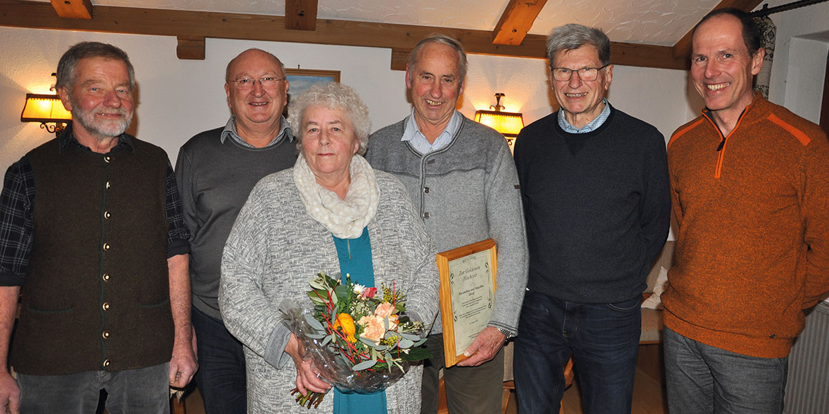 Anfangs wohnten sie noch bei den Eltern von Angelika Streif im Haus. „Ich habe die beste Schwiegermutter gehabt. Sie war eine Frau, die viel mitgemacht hat und Verständnis für vieles hatte“, so Max Streif. Die goldene Hochzeit feierte das Paar im engsten Familienkreis. Sie haben zwei Kinder und zwei Enkelkinder. „Es gibt kein schöneres Wort als Oma“, schwärmt die 71-Jährige und fügt hinzu: „Auch wenn Max für nichts Zeit hat, für seine beiden Enkelkinder nimmt er sich immer die Zeit. Dann sitzt er am Boden und spielt mit ihnen Playmobil“, erzählt die glückliche Oma. Dass sie sich alle täglich sehen ist für Angelika Streif ein Segen. Privates und die Arbeit in der Gemeinde trennt Max Streif strikt. So strikt, dass seine Frau seine kommunalpolitische Arbeit immer nur aus der Zeitung erfuhr. Zum gratulieren kam auch Johann Schwarzenbach (stellvertretender Bürgermeister in Rieden), Roßhauptens Bürgermeister Thomas Pihusch, 2. Bürgermeister Gottfried Schmid-Lindner und 3. Bürgermeister Peter Kast. Sie überreichten den Jubilaren Karten für das Festspielhaus, einen Essensgutschein sowie eine Urkunde der Gemeinde Rieden am Forggensee. Es wurden Anekdoten und Erinnerungen erzählt, und davon hatten alle viel zu erzählen.