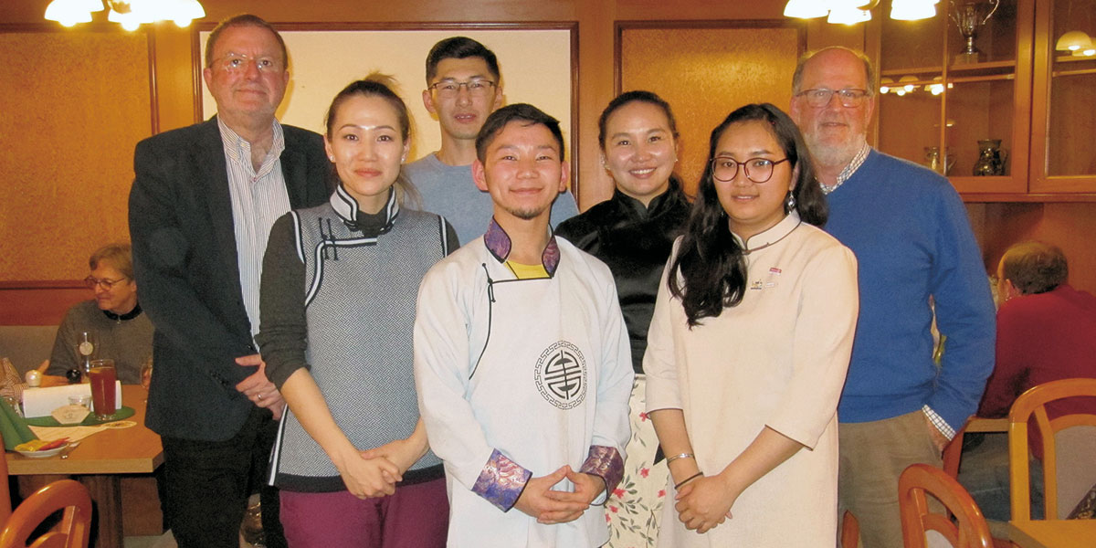 Die fünf Teilnehmer sind alle aus der Hauptstadt und Mitglieder des Rotaractclubs Ulaanbaatar. Dieser Club engagiert sich in seiner Heimat mit humanitären Projekten wie der Überprüfung der Sehschärfe tausender von Kindern, der Unterstützung junger Mongolen bei der Karriereplanung und der Planung und dem Bau eines Kindergartens. Bei der Präsentation lernten die hiesigen Rotarier, daß die zentralasiatische Mongolei flächenmäßig etwa doppelt so groß wie Deutschland ist, aber nur von rund drei Millionen Einwohnern bewohnt wird. Damit ist sie der am dünnsten besiedelte Staat der Welt.