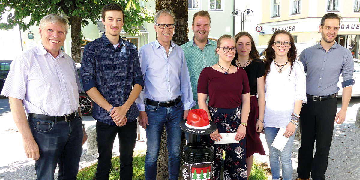 Die Malerei-Schülerinnen Friederike Lukaszewski, Viktoria Pfefferle und Veronika Lochbihler und die Bildhauerei-Schüler Matthias Karree` und Matthias Junker der Schnitzschule Elbigenalp mit Sonja Weirather als Projektbegleiterin kamen mit ihrer Idee „MISTBUA“ beim österreichischen Wettbewerb „Jugend innovativ“ bis ins Halbfinale. „MISTBUA, eine einfache und funktionelle Art der Abfallentsorgung, auch für die oft mangels Entsorgungsmöglichkeit einfach weggeworfenen Zigarettenkippen. Der signalrot, auffällig markante Hut nimmt die Kippen auf, der darunterliegende Abfalleimer ist so konzipiert, dass die Entsorgung von größeren Mengen Hausmüll unmöglich ist. Diese pfiffige Idee wurde von den Schüler*Innen auf Eigeninitiative und in ihrer Freizeit in über 100 Stunden in die Tat umgesetzt. Erfreulich, dass die Marktgemeinde Reutte 25 der ins Auge fallenden „MISTBUAM“ angeschafft hat, Zug um Zug aufstellt und so die Idee honoriert. Bürgermeister Oberer dankte darüberhinaus den Initiatoren und belohnte sie mit Einkaufsgutscheinen.