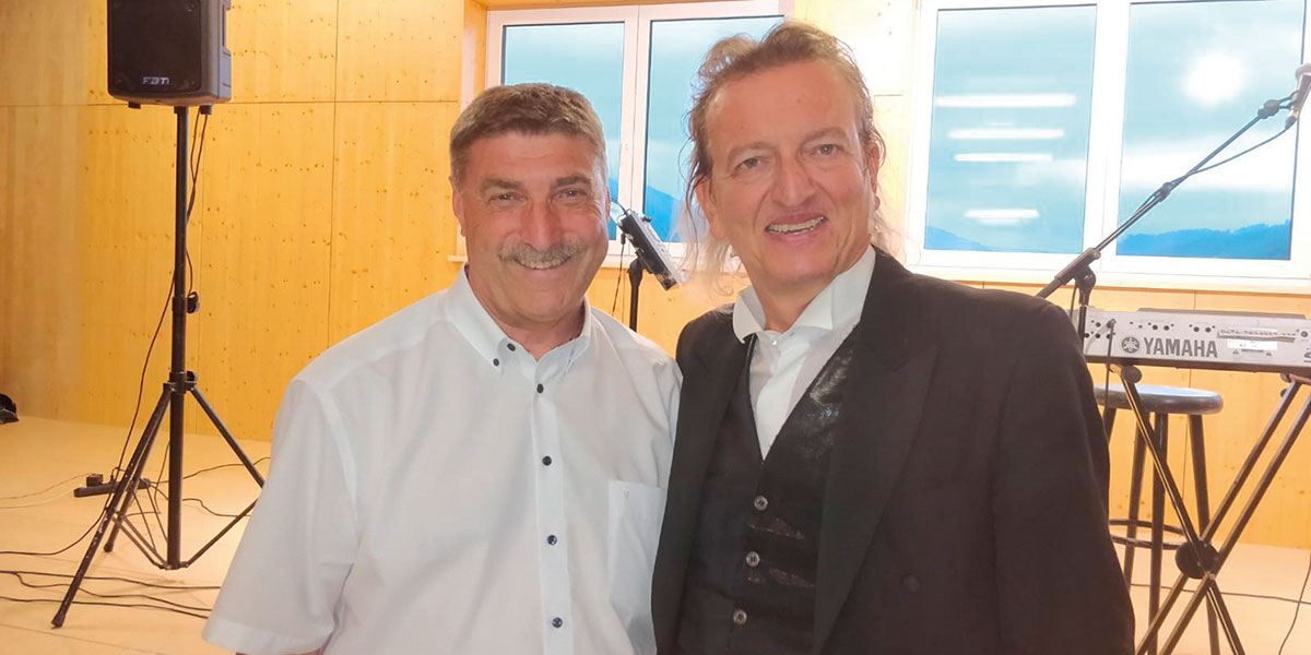 Wettervorhersage wurde das Berg-Kabarett mit Markus Linder auf dem Neunerköpfle in den Gemeindesaal Grän verlegt. 120 Personen ließen sich von dem Musik-Comedian und Bergfex in den Bann ziehen und genossen einen Abend mit bester Unterhaltung. Wie Wolfgang Moosbrugger, Geschäftsführer der Tannheimer Bergbahnen (im Bild li.), schon ankündigte, soll der Abend mit Markus Linder der Auftakt zu regelmäßigen Berg-Kabarett-Aufführungen werden. Er verriet: ,,Im August 2020 rund um den Vollmond (16.-23.) wird es eine weitere Aufführung des Musik­-Comedian geben. Der Titel „Berg-Kabarett die Zweite – ein Glücks-Stück im Tannheimer Hochtal“