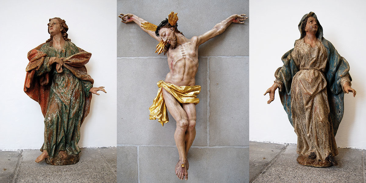 Das Museum der Stadt Füssen hatte 2016 zwei gefasste Holzfiguren erworben, die dem Füssener Bildhauer Anton Sturm (1690-1757) zugeschrieben werden. Im Magazin des Museums befand sich bereits ein sehr fein geschnitzter Kruzifixus (gekreuzigter Jesus), der ebenfalls Anton Sturm zugeschrieben wird. Alle drei Figuren können in der Schatzkammer des Museums der Stadt Füssen zu einer Gruppe vereint besichtigt werden.