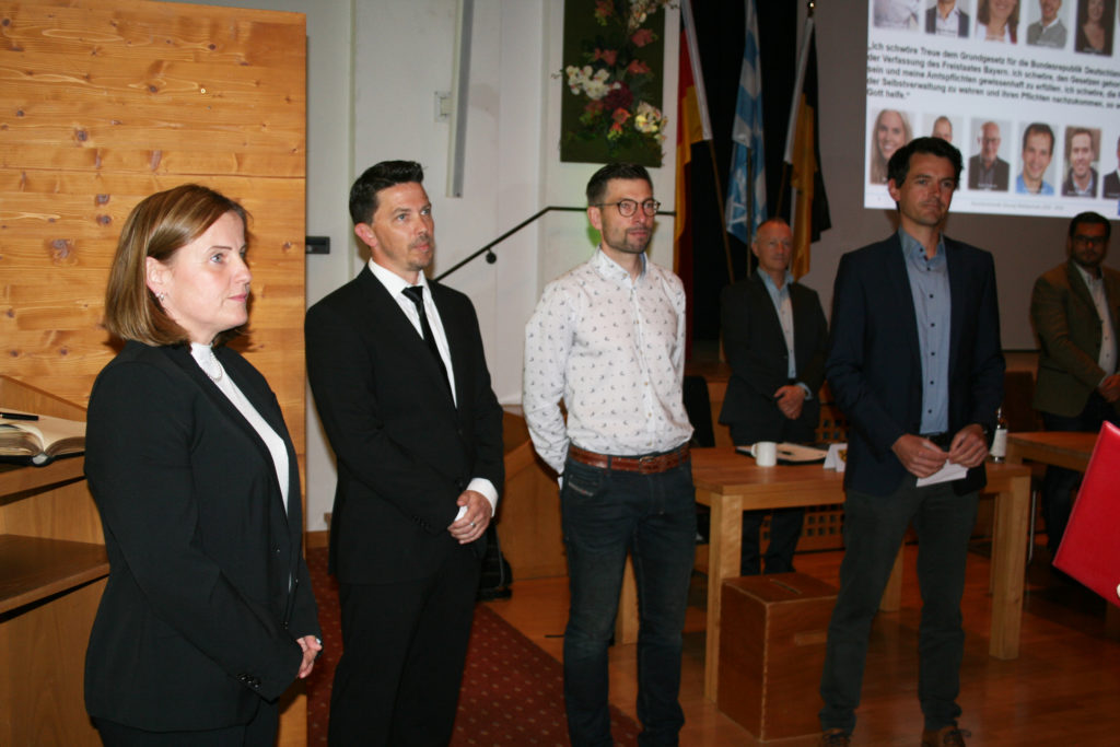 Vereidigt wurden bei der konstituierenden Sitzung des neuen Füssener Stadtrates anschließend auch die neugewählten Stadträte Christoph Weisenbach, Thomas Meiler, Simon Hartung, Barbara Henle und Nicole Eikmeier von der CSU, Bastian Schuhwerk und Anna-Verena Jahn von den Grünen, SPD Stadtrat Erich Nieberle, sowie Thomas Scheibel und Hans-Jörg Adam von der Fraktion der Freien Wähler. Neu im Stadtrat ist auch Martin Dopfer von Füssen-Land.