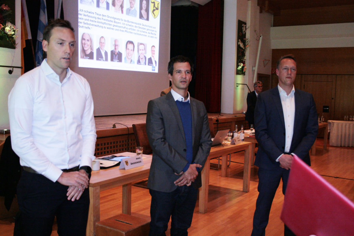 Vereidigt wurden bei der konstituierenden Sitzung des neuen Füssener Stadtrates anschließend auch die neugewählten Stadträte Christoph Weisenbach, Thomas Meiler, Simon Hartung, Barbara Henle und Nicole Eikmeier von der CSU, Bastian Schuhwerk und Anna-Verena Jahn von den Grünen, SPD Stadtrat Erich Nieberle, sowie Thomas Scheibel und Hans-Jörg Adam von der Fraktion der Freien Wähler. Neu im Stadtrat ist auch Martin Dopfer von Füssen-Land.