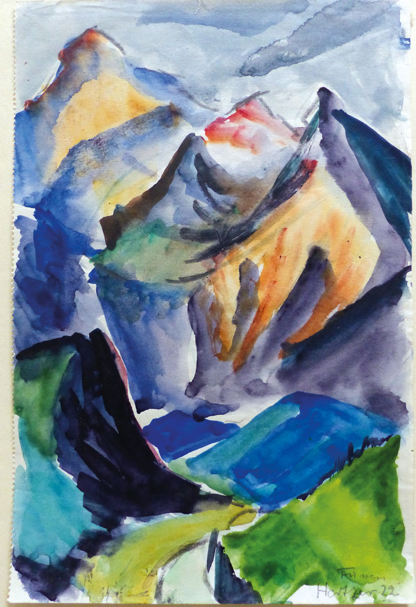 Zu den Highlights ihres künstlerischen Schaffens zählen zahlreiche farbintensive Aquarelle. Die meisten dieser Aquarelle entstanden in den 1920er Jahren und zumeist auf Reisen in den Süden, wobei sie die Alpenregion bevorzugte. Die 1922 in Füssen geschaffenen Aquarelle und jene, die in den Jahren 1923 bis 1928 in den Alpen entstanden sind, werden nun erstmals öffentlich zu sehen sein. Hinzu kommen Aquarelle und Zeichnungen mit Motiven aus Berlin und Wittenberg sowie vier Kirchenfensterentwürfe in Farbpastell und Maskenentwürfe für das weltanschauliche Sprechstück „Ewig Verhülltes“, das die Künstlerin 1958 verfasste.