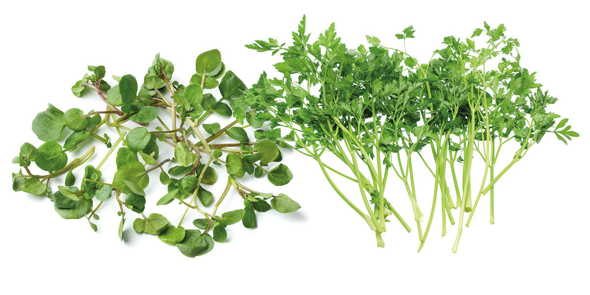 Das Kraut mit dem frischen, leicht scharfen Geschmack, der an Gartenkresse erinnert, kann natürlich nicht nur zum Kochen verwendet werden, zum Beispiel frisch in Suppen und Salaten, es werden ihm auch gerade in der Naturheilkunde diverse gute Wirkungen zugesprochen. Die Brunnenkresse enthält auch tatsächlich viele hilfreiche Inhaltsstoffe, wie z.B. Senfölglykoside, die verdauungsfördernde, stoffwechselanregende und antibakterielle Wirkungen haben. Ihr hoher Eisengehalt in Verbindung mit Folsäure beugt Blutarmut vor. Das ebenfalls enthaltene Vitamin C erleichtert die Eisenaufnahme aus pflanzlicher Nahrung. In 100g grünem Kraut ist so viel davon enthalten, dass sich damit sogar der Tagesbedarf eines Erwachsenen decken ließe! Daneben ist sie reich an Mineralstoffen, Spurenelementen, sowie ätherischen Ölen und Bitterstoffen.