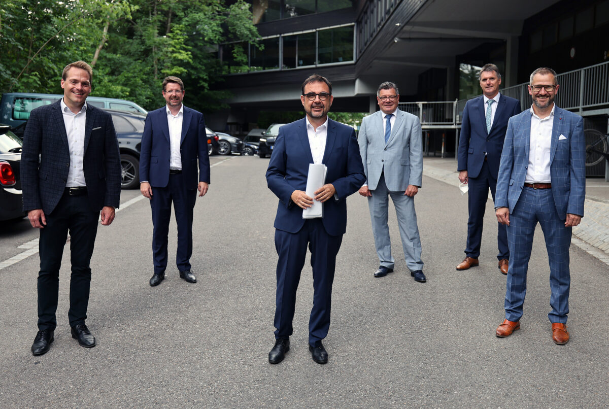 Der Bayerische Gesundheitsminister Klaus Holetschek hat sich im MVZ Enzensberg ein Bild über die aktuelle Impfsituation im Allgäu gemacht. Denn Arztpraxen spielen bei der Impfstrategie der Bundes- und Landesregierung eine sehr wichtige Rolle. 75 Mitarbeiter:innen der Stadt Füssen, die sehr viel Kontakt zu Bürger:innen haben, wurden vom Ärztlichen Leiter des Medizinischen Versorgungszentrums, Dr. Hans-Martin Beyer, und seinem Team gegen COVID-19 geimpft. Den Impfstoff hatte die Betriebsärztin der Stadt Dr. Birgit Durach zusammen mit der St. Mang Apotheke in Füssen besorgt.