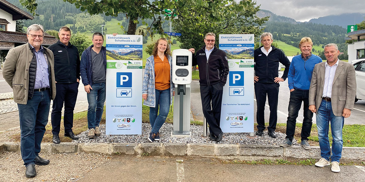 Als erste ganzheitliche Tiroler Urlaubsdestination haben die Gemeinden und der Tourismusverband Tannheimer Tal auf Initiative des Elektrizitätswerks Schattwald den Aufbau einer flächendeckenden Ladeinfrastruktur umgesetzt. Mit dem Einstieg vieler namhafter Autohersteller in den Themenbereich E-Mobilität und den Vorgaben der EU für künftige Abgasgrenzwerte bei Personenkraftfahrzeugen sah der heimische Strom-Regionalversorger die Zeit reif, ein ganzheitliches Konzept flächendeckender Lademöglichkeiten in Zusammenarbeit mit den Gemeinden und dem TVB zu etablieren. Bei der Umsetzung wurde nicht nur auf eine besonders günstige Standortwahl geachtet, sondern auch darauf, einheimische E-Pioniere, wie diese vom Unternehmen genannt werden, zu fördern. Zum Start der aktuellen Mobilitätsoffensive stehen in jeder Gemeinde an gut zu erreichenden Parkplätzen sowie am Unternehmenssitz des EW Schattwald selbst jeweils zwei Ladepunkte zur Verfügung. Einheimische, die bereits ein E-Fahrzeug nutzen und Stromkunden des Unternehmens sind, kommt das Unternehmen mit guten Konditionen entgegen. Entscheidend hierbei ist, dass die Ladeenergie zu 100% regenerativ, regional heimartstark und nachhaltig erzeugt wird, wie dies beim Aufbau der einzelnen Einheiten einer der Grundpfeiler war. Somit decken sich die Ziele aller Beteiligten. Auch der touristische Mehrwert ist nicht außer Acht zu lassen, hierüber freut sich insbesondere der Tourismusverband mit Obmann Walter Barbist und Geschäftsführer Michael Keller.