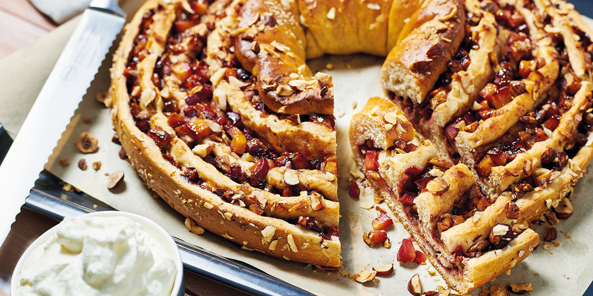 Ein lockeres Hefegebäck gefüllt mit Pflaumen und Haselnüssen