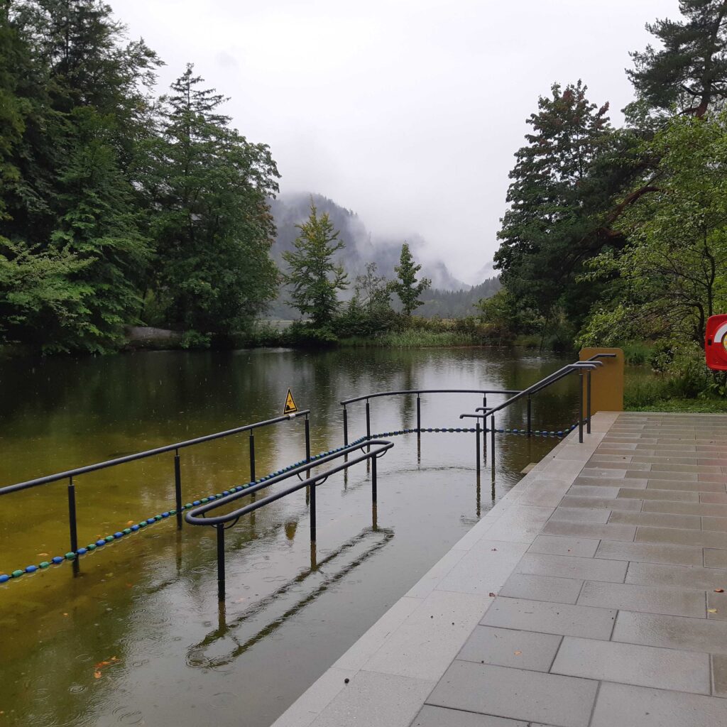 Die Außenflächengestaltung am Mittersee ist nahezu abgeschlossen, der zweite Bauabschnitt ist somit weitgehend fertiggestellt. Das meldet die Stadt Füssen in einem kurzen Zwischenbericht. Neu gestaltet wurden dabei Wege, Vorplatz Gebäude, Treppe, Platz am See, sowie der Park mit Bänken und Liegen. Diese Bereiche können ab dem heutigen Freitag bereits der Öffentlichkeit zur Nutzung übergeben werden. Durchzuführen sind demnach noch ein paar Restarbeiten, wie Rasenfeinplanie und Gehölzpflanzung, beides mit autochthonem Pflanzmaterial, welche dann bis Mitte November abgeschlossen sein werden. Die offizielle Eröffnung folgt zu einem späteren Zeitpunkt.