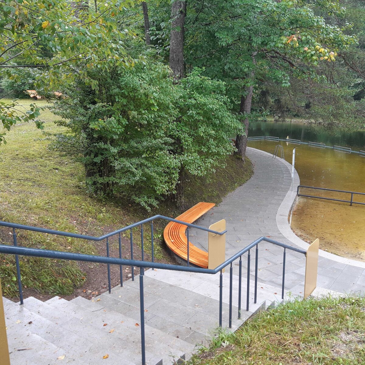 Die Außenflächengestaltung am Mittersee ist nahezu abgeschlossen, der zweite Bauabschnitt ist somit weitgehend fertiggestellt. Das meldet die Stadt Füssen in einem kurzen Zwischenbericht. Neu gestaltet wurden dabei Wege, Vorplatz Gebäude, Treppe, Platz am See, sowie der Park mit Bänken und Liegen. Diese Bereiche können ab dem heutigen Freitag bereits der Öffentlichkeit zur Nutzung übergeben werden. Durchzuführen sind demnach noch ein paar Restarbeiten, wie Rasenfeinplanie und Gehölzpflanzung, beides mit autochthonem Pflanzmaterial, welche dann bis Mitte November abgeschlossen sein werden. Die offizielle Eröffnung folgt zu einem späteren Zeitpunkt.