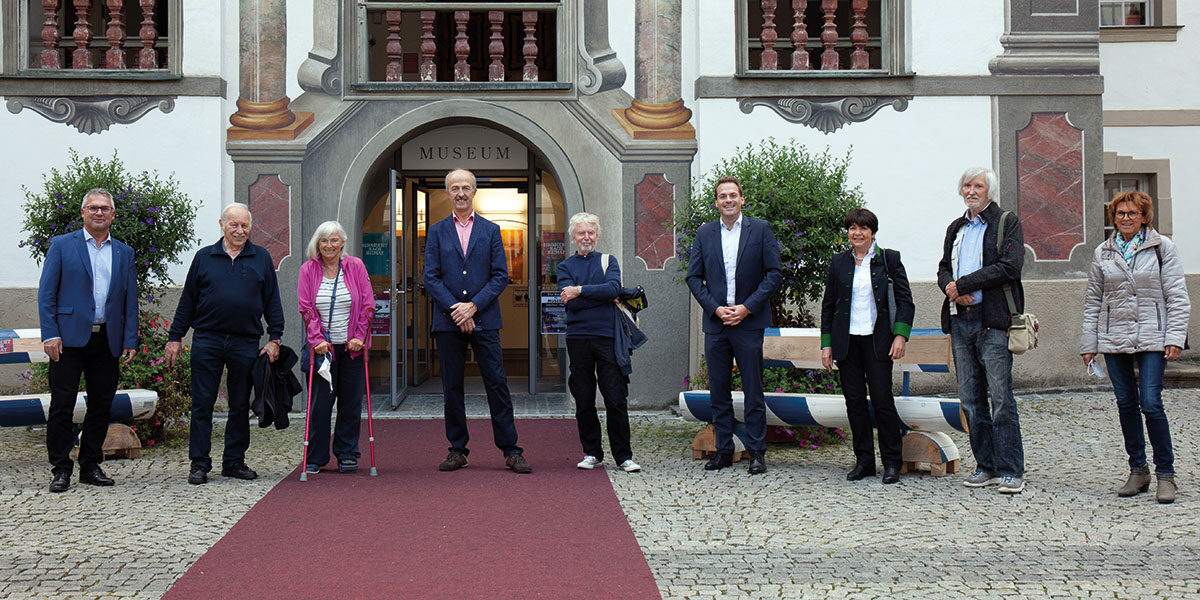 Bürgermeister Maximilian Eichstetter hat kürzlich sieben Füssener Ehrenamtliche empfangen, die vom Landkreis für ihr Engagement ausgezeichnet worden sind. Neben Sekt und Häppchen bekamen die ausgewählten Ehrenamtlichen eine Grußbotschaft der Landrätin Maria Rita Zinnecker per Video zu sehen und anschließend eine Museumsführung von Leiter Dr. Anton Englert. Mit der Verleihung der Ostallgäuer Ehrenamtskarte bedankt sich der Landkreis in diesem Jahr zum fünften Mal gemeinsam mit den 45 Gemeinden bei seinen Ehrenamtlichen. Stellvertretend für alle Freiwilligen im Ostallgäu erhielten rund 500 Ehrenamtliche die Ehrenamtskarte des Landkreises. Die Karte bietet in diesem Jahr 34 Erlebnisse wie den Eintritt für Schloss Hohenschwangau und Schloss Neuschwanstein sowie für Bergbahnen, Museen und Freizeiteinrichtungen. Aufgrund der Coronapandemie überreichte Zinnecker den Ehrenamtlichen die Karte nicht persönlich, stattdessen erhielten die ausgewählten Ehrenamtlichen die Karten per Post.