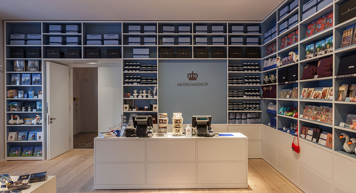 Normalerweise gelangt man in das kleine Geschäft erst am Ende eines Rundgangs durch das Museum. Durch die immer noch anhaltenden Maßnahmen zur Eindämmung des Coronavirus wurde allerdings vor einiger Zeit schon eine weitere Eingangsmöglichkeit geschaffen, damit Kunden und Gäste den Shop auch ohne einen Besuch im Museum, für den sie einen aktuellen Test nach dem 2G+ Prinzip benötigen, erreichen können.