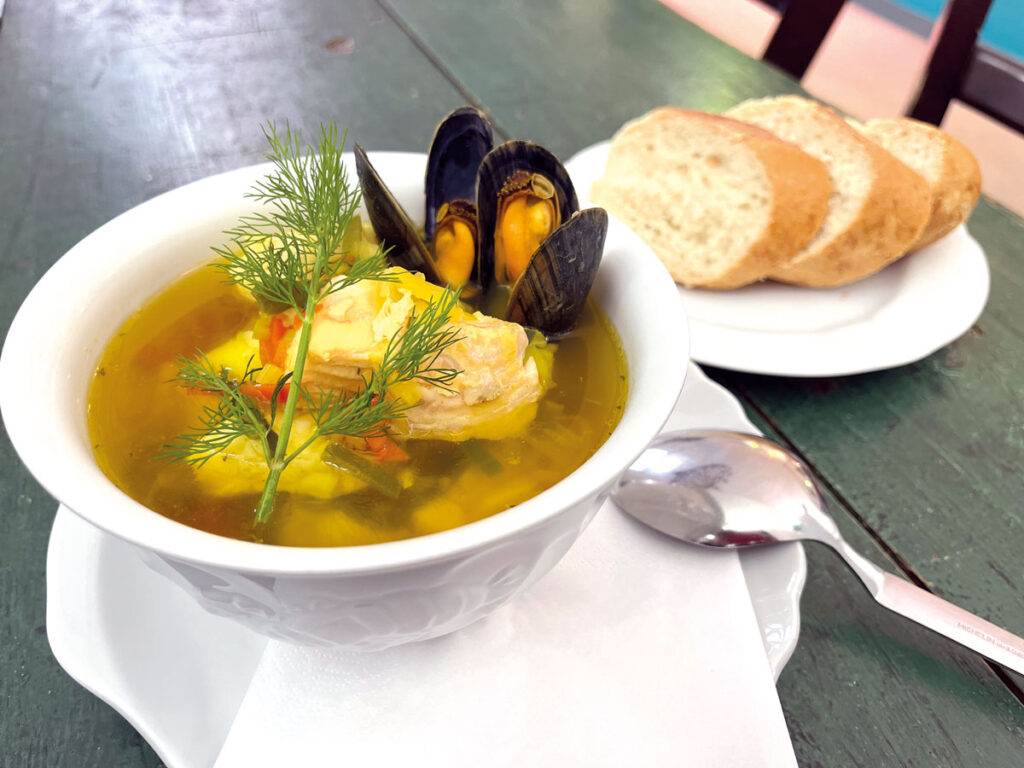 Aus der damaligen Selbständigkeit ist nichts geworden, dafür haben sich ihr viele neue Möglichkeiten und Wege erschlossen, die sie angenommen hat. Als eines Tages Gabriele Böhler vom „Fisch Geiger“ bei ihr anfragte, ob sie nicht Lust hätte, zwei Tage in der Woche Sushi zu machen, überlegte sie nicht lange und sagte zu. Jeden Mittwoch- und Donnerstagmittag gab es für die Kunden Sushi im Angebot. Die Arbeit und der Umgang mit den Kunden machte ihr Spaß, so dass aus den wenigen Arbeitsstunden mehr wurden. Das war vor 15 Jahren. Seit dem 1. Januar hat sie den Fischstand in der Markthalle übernommen. „Ich habe nicht daran gedacht, in die Selbständigkeit zu gehen. Dass sich gerade hier die Chance dafür geboten hat, darüber freue ich mich sehr“, so die vierfache Mutter. Was sich durch die Selbständigkeit ändern wird oder ändern könnte, schob sie ganz weit weg von sich. Positive Erfahrungen spornten sie an, trotz der Pandemie das Geschäft zu übernehmen. „Wir haben das große Glück, Stammkunden zu haben, die auch während des Lockdowns zum Einkaufen kamen“, erzählt sie. Gemeinsam mit ihrem Lebensgefährten, Geigenbauer und Musiker Oliver Radke, wird die 54-Jährige den Fischstand betreiben. „Es bleibt alles so, wie es ist und die Gäste und Kunden können sich auch weiterhin auf die gute Fisch-Geiger-Suppe freuen.“ Tatsächlich ist die Fischsuppe ein Markenzeichen des Fischstandes in der Markthalle, die Gäste von überall her anzieht. Serviert wird die Spezialität in einer großen Suppenschüssel mit Weißbrot. In Zukunft können sich die Gäste auch auf die japanische Delikatesse „Ramen“ freuen. Das ist eine Suppe mit speziellen frischen Weizennudeln die in einer würzigen Brühe zusammen mit Toppings wie Gemüse, Fleisch, Fisch und Eiern, serviert wird.