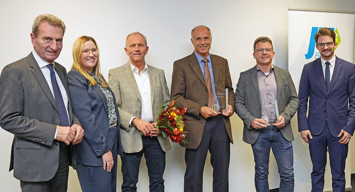 Vor 50 Jahren kreuzten sich schon einmal die Wege von Bihler und Anton Jaumann. 1972 war der Wirtschaftsminister in Halblech und zeigte sich unter anderem begeistert von der ausgezeichneten Ausbildung bei Bihler – 2022 nun hat die Otto Bihler Maschinenfabrik den Preis gewonnen, der im Andenken an den Politiker vergeben wird. Die Verleihung des Anton Jaumann-Preises fand im INNOVA-Park in Kaufbeuren statt. Der frühere Ministerialdirigent des Wirtschaftsministeriums, Klaus Jasper, betonte in seiner Laudatio, dass es in Schwaben zahlreiche innovative Unternehmen gebe, die den Wirtschaftsstandort stärken und für Arbeitsplätze sorgen. Dazu gehören auch die diesjährigen Preisträger, für die sich die Jury aus Vertretern schwäbischer Hochschulen, Wirtschaftsorganisationen und der Jungen Union Schwaben entschieden hat.