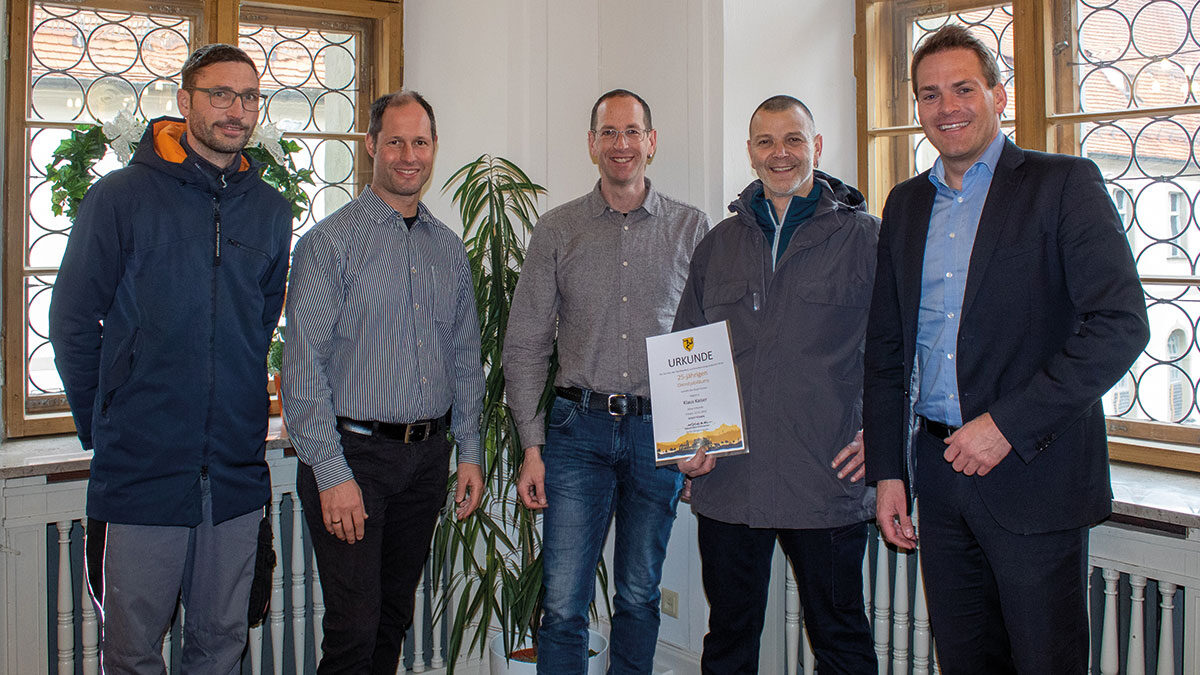 25 Jahre ist eine lange Zeit. „Herzlichen Glückwunsch für ein Vierteljahrhundert bei der Stadt Füssen und vielen Dank für den Einsatz“, sagte Eichstetter an den Hausmeister der Grundschule, Klaus Kaiser. Der 56-Jährige begann seine Karriere bei der Stadt Füssen im Jahr 1998 im städtischen Bauhof, den er später auch kurzzeitig kommissarisch leitete. Seit 2020 arbeitet er als Hausmeister in der Grundschule.