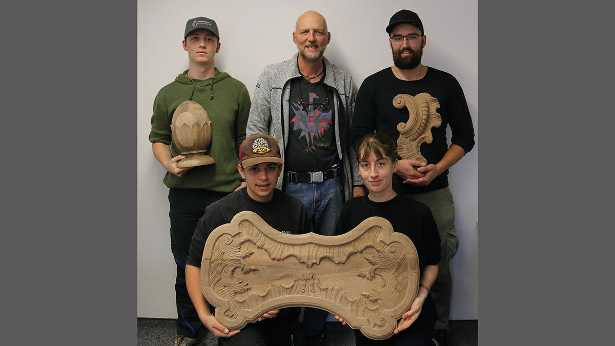 Im Zuge des 10-wöchigen Betriebspraktikums fertigten vier Schüler/innen der Fachschule für Kunsthandwerk und Design (Schnitzschule Elbigenalp) zusammen mit ihrem Fachlehrer Horst Pali die ornamentalen Verzierungen des erneuerten großen Stiftstores des Stiftes Stams. Dabei dienten die alten Ornamente, die nunmehr in Nussholz geschnitzt wurden und im Stamser Museum aufbewahrt werden, als Vorlage. Mit Hilfe des Tischlers, der das große Stiftstor erneuert hat, wurde nunmehr das Gesamtwerk vollendet. Das Ergebnis kann sich wahrlich sehen lassen.