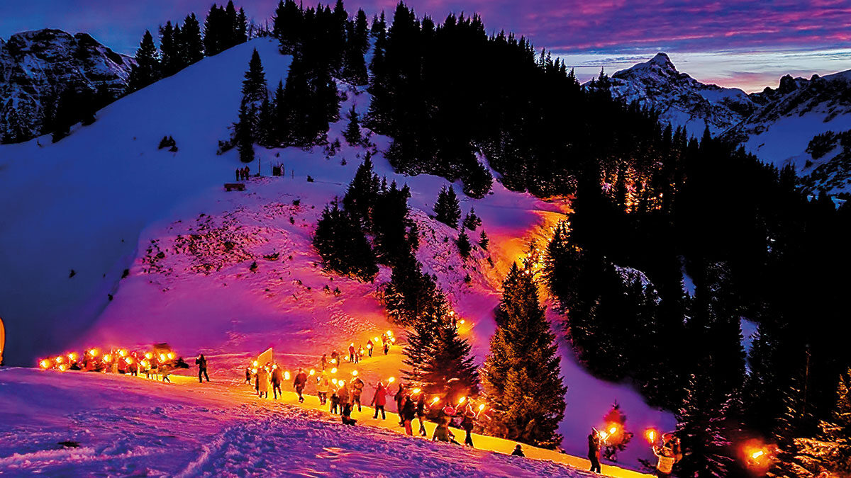 Auf Einladung der Tannheimer Bergbahnen konnten um die 450 Gäste ihren 1. Gipfelsieg des Jahres auf dem Neunerköpfle feiern. Es ist eine besondere Zeit – die Zeit zwischen den Jahren (22.12.-06.01.), die auch die Rauhnächtezeit genannt wird – die Wolfgang Moosbrugger in seiner Begrüßung in den Mittelpunkt stellte. In seiner Rolle als „Bergphilosoph“ erzählte er den Gästen von den Gegebenheiten und der Tradition in der Vergangenheit im Tannheimer Tal sowie auch im angrenzenden Lechtal.