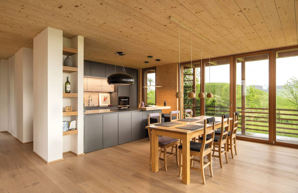 Inzwischen baut Thoma nach diesem natürlichsten Prinzip alle möglichen Gebäudearten. Fasziniert von dieser Art des Holzhausbaus sind auch Thomas und Stefan Klein von der Firma Buchner aus Wildsteig. Sie gehören zu den europaweit ausgewählten Betrieben, die in enger Zusammenarbeit mit Erwin Thoma dessen Häuser planen und aufbauen.