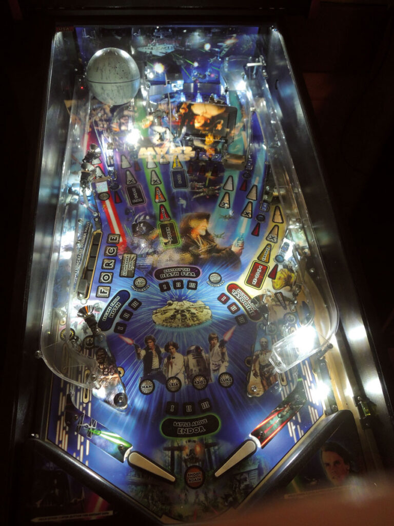 Auch Dart spielen gehört zum Lokal dazu. Im hinteren Raum kann man nicht nur gemütlich sitzen, sondern auch E- und Stil-Dart spielen, so wie die drei Ligamannschaften, die sich regelmäßig im Pub treffen oder am Star-Wars-Flipper ihre Geschicklichkeit und Schnelligkeit testen.