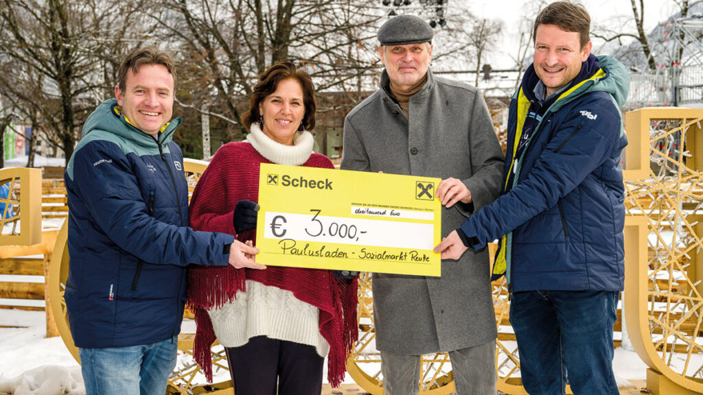 Ihr Ziel ist es, unmittelbare finanzielle Hilfe für Personen zu leisten, die in der Region Außerfern in Not geraten sind. Der Verein setzt sich dafür ein, Menschen in schwierigen Lebenslagen schnell und unbürokratisch zu unterstützen, ein Engagement, das tief in der Gemeinschaft verwurzelt ist. Bei der Übergabe an den Heimleiter des Haus Ehrenberg, Herrn Stephan Mayr, waren von Veranstalterseite Thomas Ruepp, Vorstand des Tourismusverbands, sowie Boris Gundolf vom Biathlon Verein Reutte und Thomas Schneider vom s‘Radhaus zugegen.