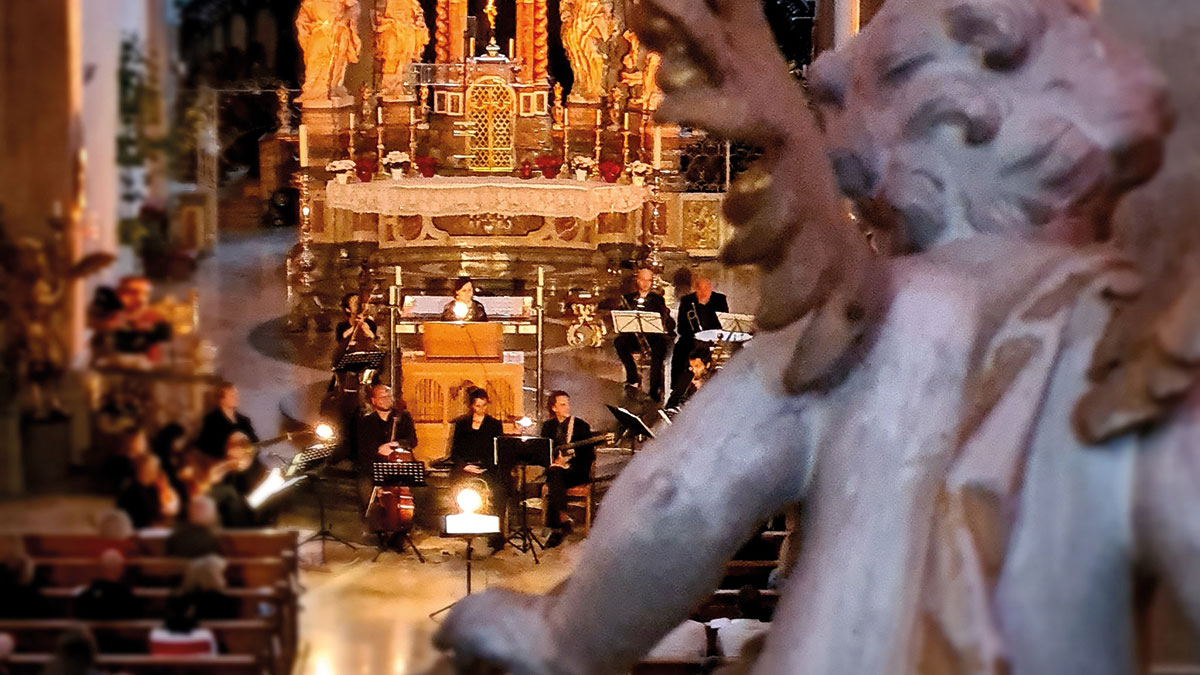 Füssen liefert mit dem Kaisersaal, dem Chorgestühl und der Barockbasilika St. Mang aber nicht nur den – auch akustisch – glanzvollen Rahmen für die Konzerte, sondern wird mit seiner (Musik-)Geschichte selbst zum Thema: Beim Programm Totentanz und Himmelsreigen nimmt Sabine Lutzenberger am 7. Juni zusammen mit einem Instrumentalensemble das Thema des Füssener Totentanzes auf, der als ältester in Bayern erhaltener Totentanz gilt. Themenführungen stellen diesen Totentanz in der Annakapelle, die Orgeln von St. Mang und die barocken Festräume des früheren Benediktinerklosters St. Mang vor.