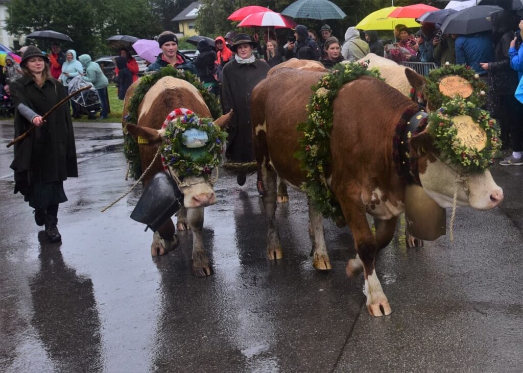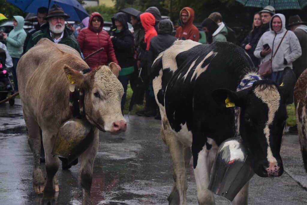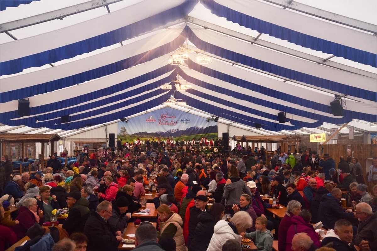 Trotz des kalten und nassen Wetters kamen unzählige Zuschauer, um beim Pfrontener Viehscheid dabei zu sein. Das Bierzelt war voll mit gut gelaunten Menschen.