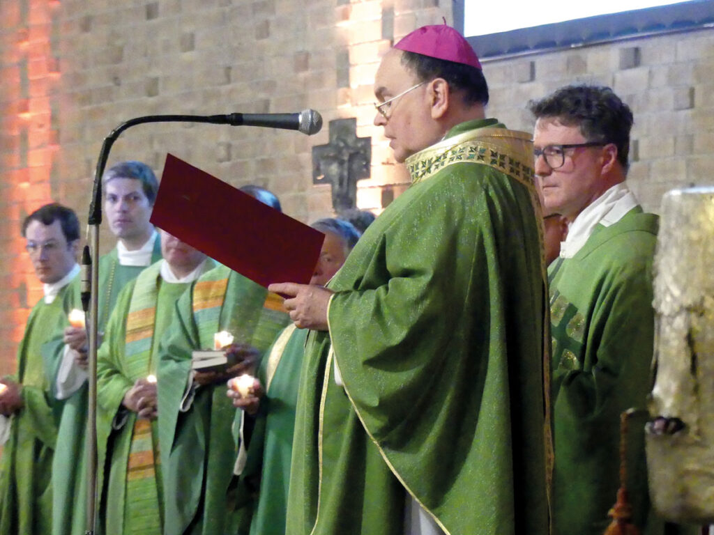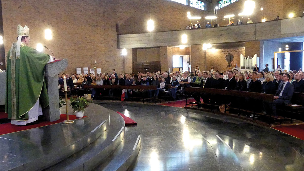 Von ganzem Herzen dankte der Oberhirte allen Seelsorgern, aber auch allen Ehrenamtlichen für das, was sie alle im Laufe von fast 60 Jahren auf die Beine gestellt haben. „Verständlich, dass sich Wehmut breit macht, es ist ein schmerzvoller Abschied, aber nicht ohne Hoffnung. Die Entscheidung zum Abriss, die sie als Pfarrgemeinde getroffen haben, ist in vielerlei Hinsicht logisch und auch geistlich notwendig, eine Investition in diese überdimensionierte Kirche hätte keine Zukunft.