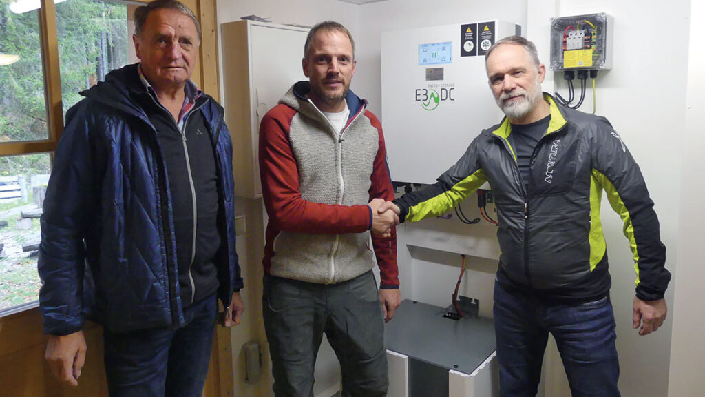 Definitiv: Es ist ein Schritt in die richtige Richtung! Nachdem sich Peter Gerber, erster Vorstand und Hüttenreferent Herbert Dopfer umfänglich über PV-Anlage, Batteriespeicher und deren Vorteile für die eigene Berghütte des DAV informiert hatten, war die Entscheidung schnell getroffen. Zugunsten des Allgemeinwohls soll zukünftig von der Nutzung einer PV-Anlage mit Batteriespeicher profitiert werden.
