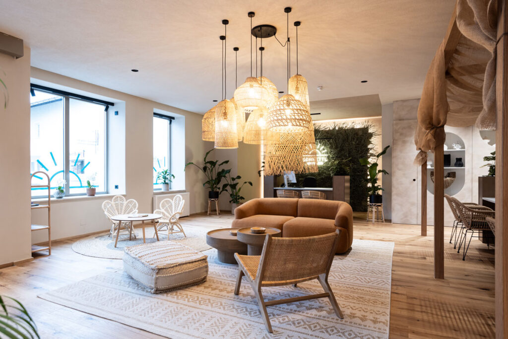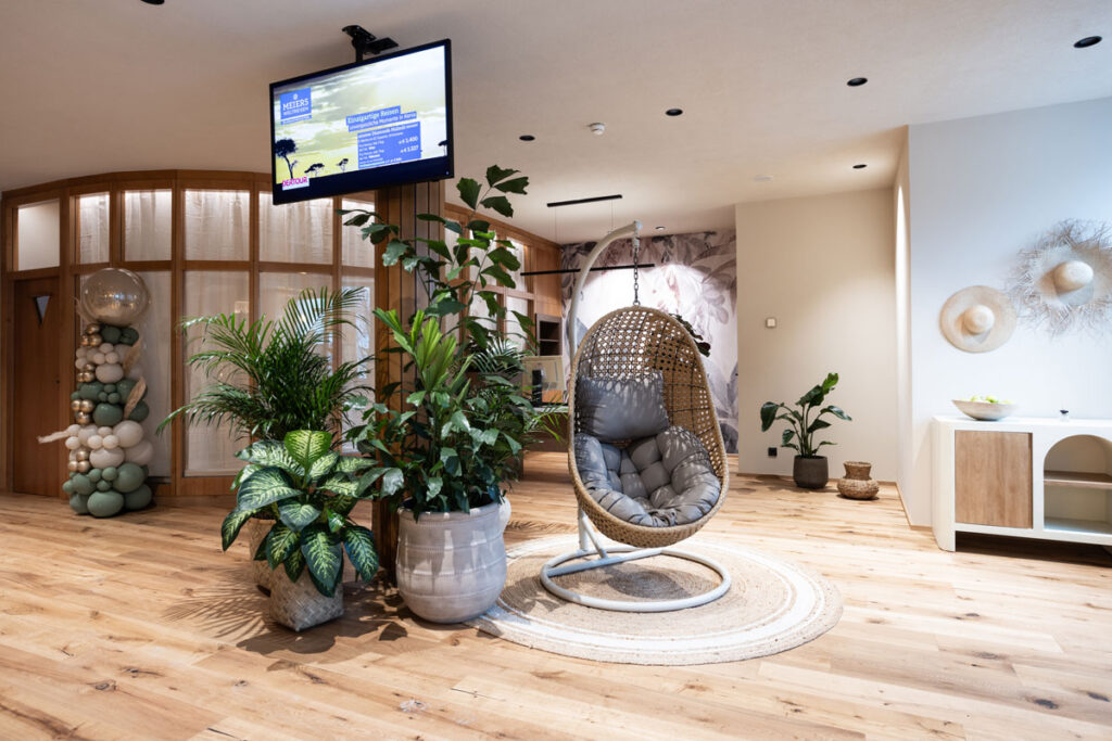 „Wir wollten einen Ort schaffen, an dem sich unsere Kunden vom ersten Moment an wie im Urlaub fühlen“, erklärt Raffaela Pittracher. Das hat sie geschafft! Beim Betreten des Reisestudios wird sofort klar: Hier wurde mit viel Liebe zum Detail gearbeitet. Das Design im „Boho-Stil“ versprüht südliches Flair und lädt zum Träumen ein. Statt klassischer Katalogwände finden Kunden stilvoll gestaltete Beratungsplätze vor, die eine entspannte Atmosphäre für die Reiseplanung bieten.