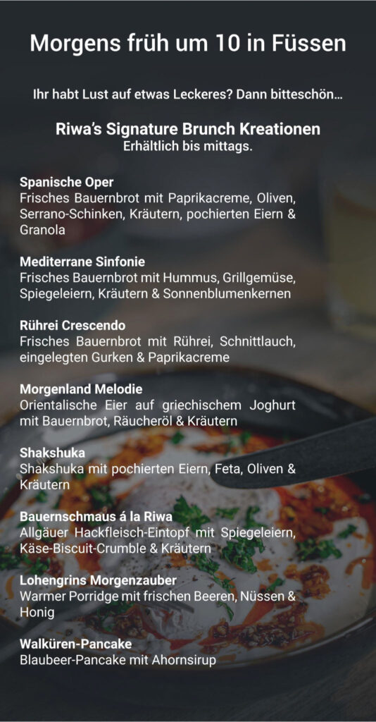 Ab sofort wird aus dem „besten Frühstücksbuffet der Stadt“ ein echter Brunch-Traum! Jeden Tag von 10:00 bis ca. 12:00 Uhr erwartet euch unser brandneues RIWA Signature Frühstücksangebot – perfekt für alle, die den Morgen etwas länger und genussvoller zelebrieren möchten.
