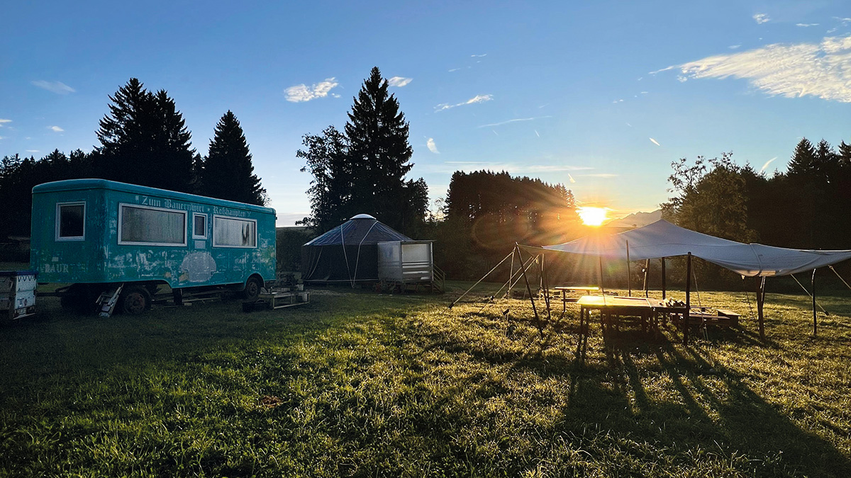 Besonders berührend ist das Engagement der Eltern. Nicht nur wurde die einzigartige, kreisrunde Jurte – ein heller, holzduftender Wohlfühlraum mit Ofen zum Aufwärmen – in Eigenregie und mit Unterstützung eines Jurtenbauers errichtet. Die Elterninitiative übernimmt auch wichtige Hausmeisterarbeiten. Hinzu kommt eine enorme Geste des Vertrauens aus der Gemeinde: Die beiden Grundstücke werden von Riedener Eigentümern kostenfrei zur Verfügung gestellt. Dieses gelebte Miteinander ist ein Beweis dafür, was entsteht, wenn Menschen an eine Vision glauben. Den obligatorischen Bauwagen gibt es aber trotzdem. Dort befindet sich das Büro.